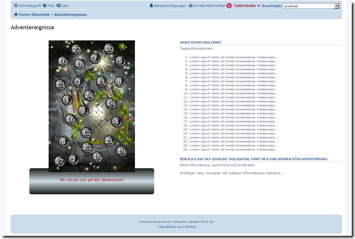 Adventinducement-Calendar / Adventereigniskalender für phpBB 3.1.x